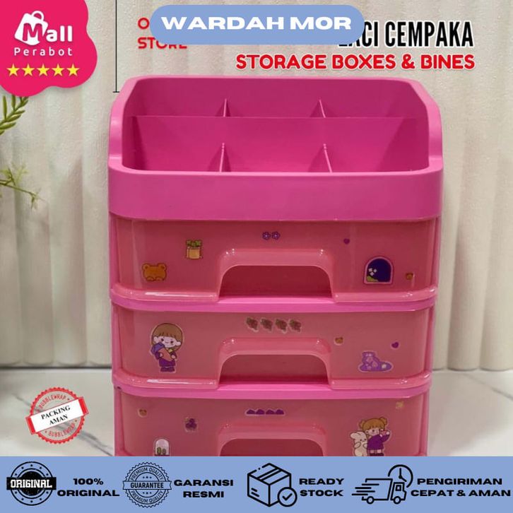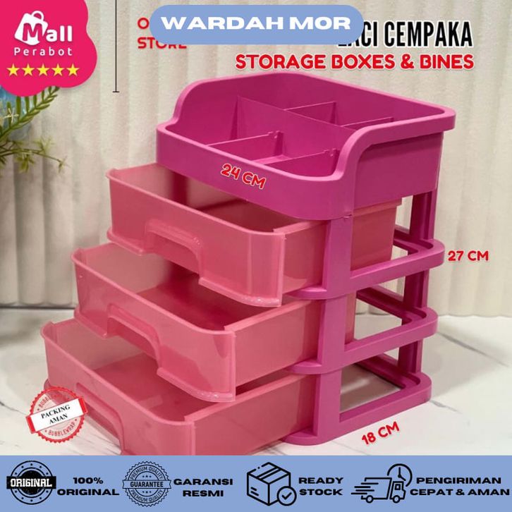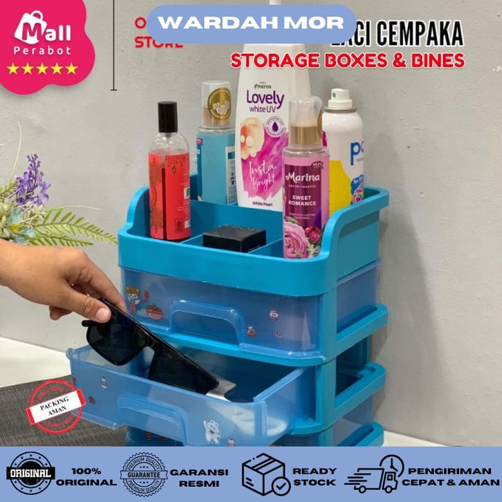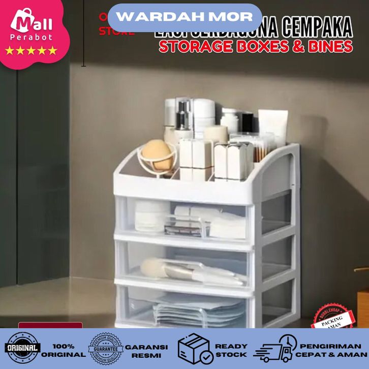 Mall Perabot Laci Skincare Besar Kosmetik CEMPAKA Multifungsi 3 Laci Susun Make Up Organizer Aksesoris WARDAH MOR