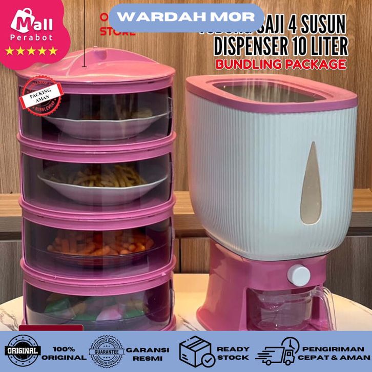 Mall Perabot BUNDLING Dispenser Beras 10 Liter Tudung Saji 4 Susun Tempat Penyimpanan Beras Rice Box Harga Termurah