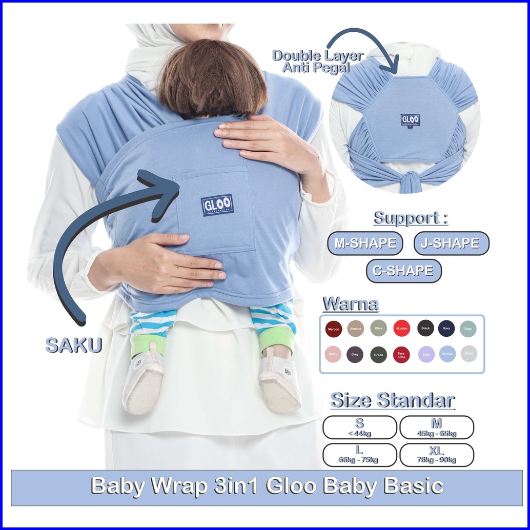 Gendongan Bayi Depan M Shape Baby Wrap 3in1 Gloo Baby