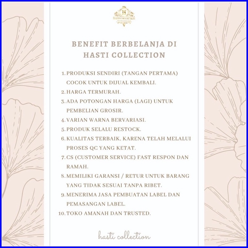 Hitam, Broken white, Nevy, Maroon, Dusty, Nude, Army, Grey, Silver, Polisi, Coklat, Millo, Mocca, Khaki, Merah cabe, Denim, Lemon, Purpel, Tosca, Powder, Fuschia, Matcha, Mustard, Plum, Teracotta, Emerland, Moccacino, Oliv zaitun, Coffee, Birel, Caramel, Beige, Dullpink, creamy, abu semen, ash silver, biru muda, Mint, Moss green, Cappucino, Rose Berry, Choconut, Burgundy, Peony, Baby Blue, Taupe, Coral, Almond, Hazel, Sage, Platinum, Stone blue