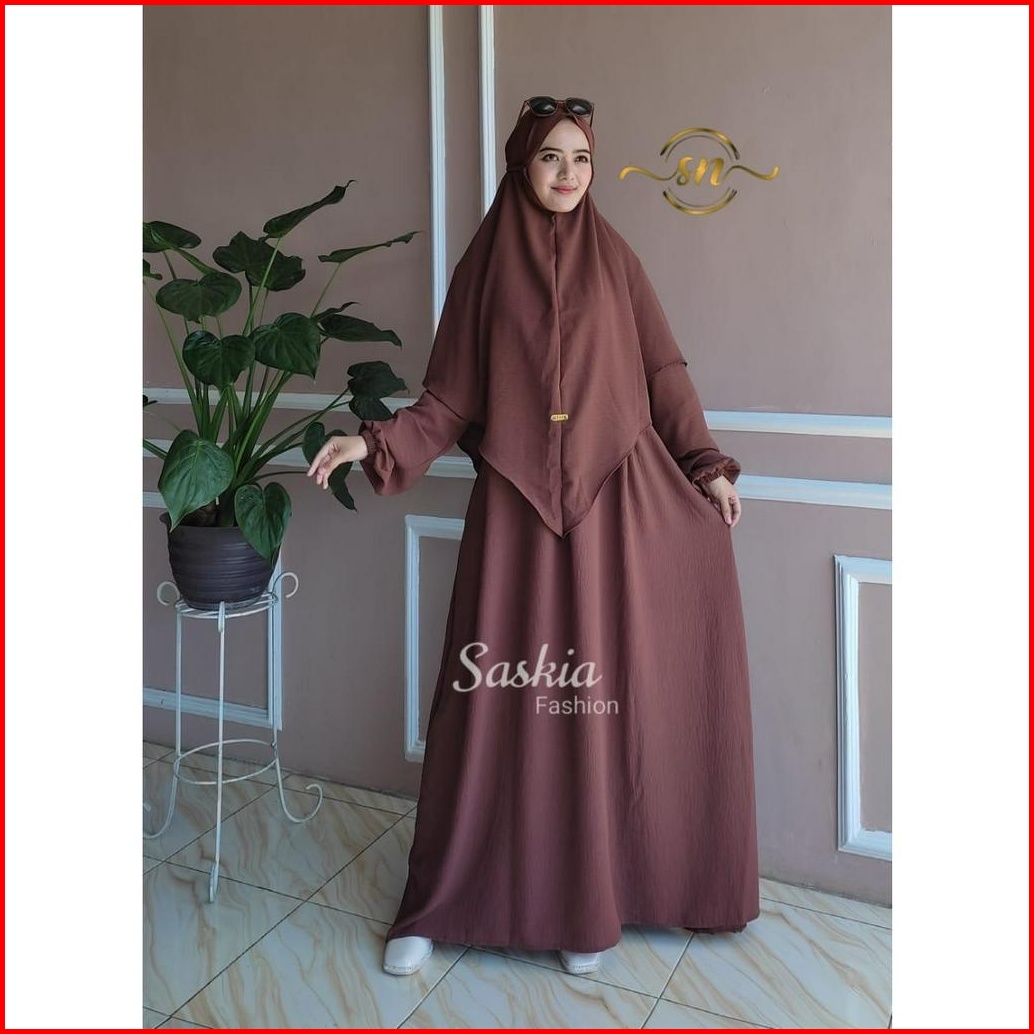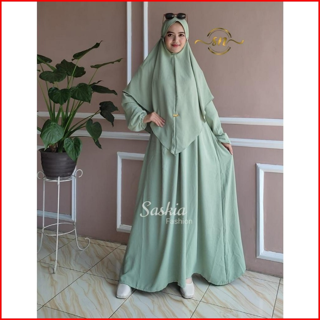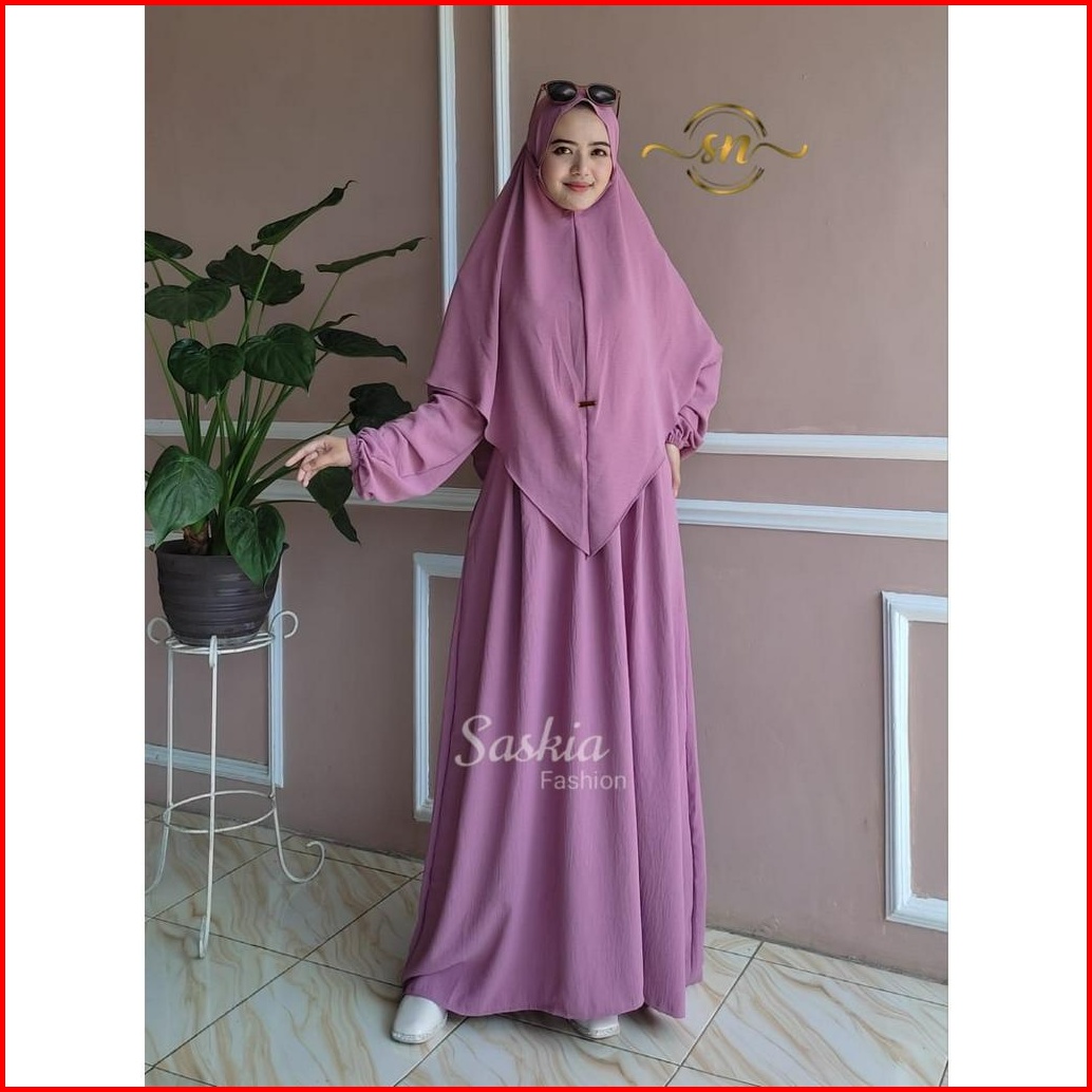 Baju Gamis Saskia Syar I Hijab Bergo Terbaru Krinkel Airflow Polos