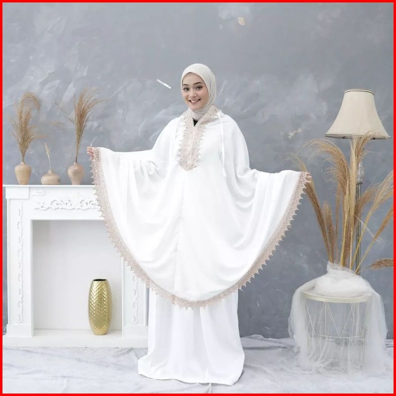 Mukena Dewasa Resleting Muknah Terbaru Katun Polos 2in1 Renda Mewah Series Madinah Jumbo Free Tas Dan Broos
