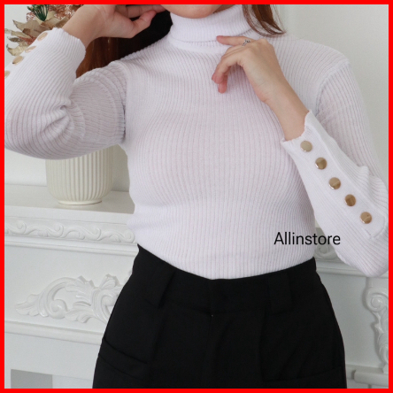 Ais Turtleneck Inara - Knit Baju Rajut Kancing Wanita - Atasan Inner Manset Rajut Lengan Panjang