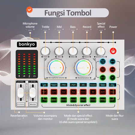 sound card Bonkyo F999MAX BLUETOOTH COMPATIBLE EXTERNAL WIRELESS DJ MIXER PENGURANGAN KEBISINGAN AUDIO KARTU LAPT