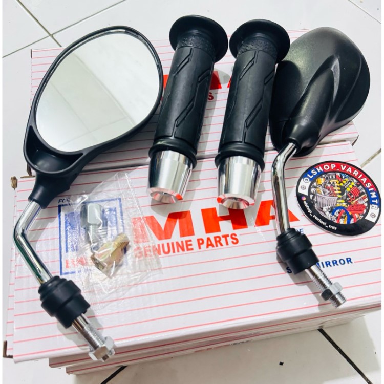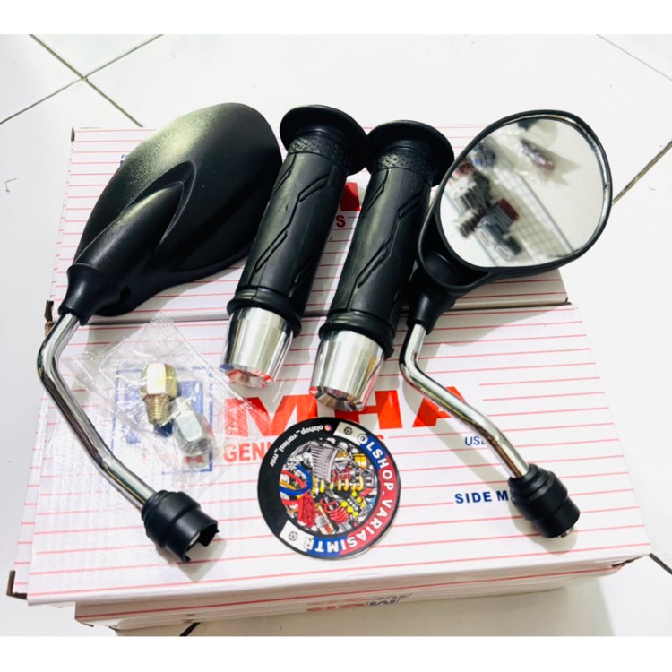 Set Paket Kaca Spion X1 Tangkai Chrome+Handgrip Yamaha Plus Jalu Stang Pcx Chrome All Motor