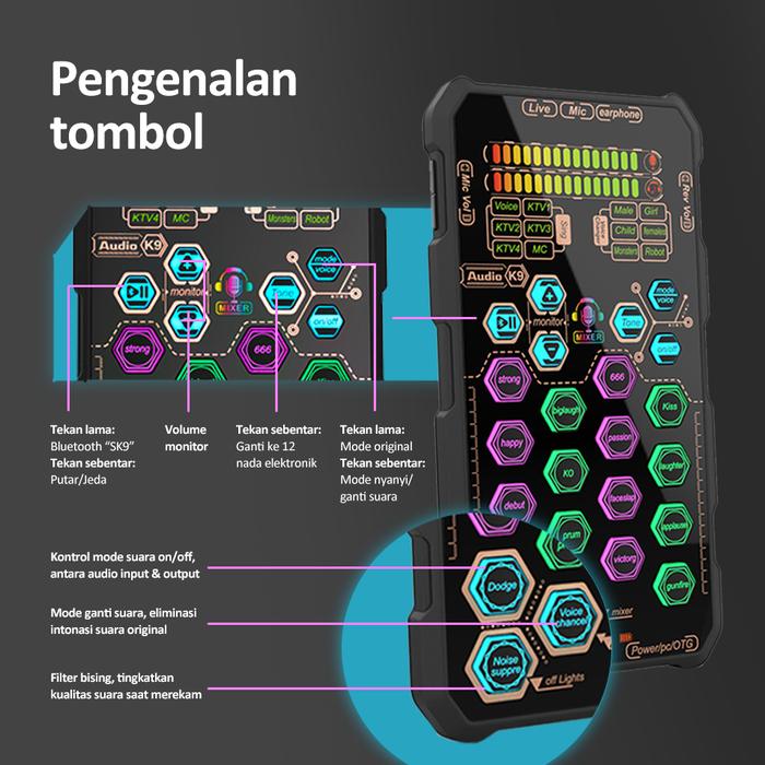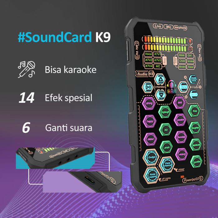 BONKYO K9 SOUNDCARD REKAMAN LAPANGAN UNIVERSAL LUAR RUANGAN KECIL UNTUK PONSEL DAN KOMPUTER SOUND CARD MIC MIXER BLUETOOTH PHONE PC AUDIO KARTU - K9