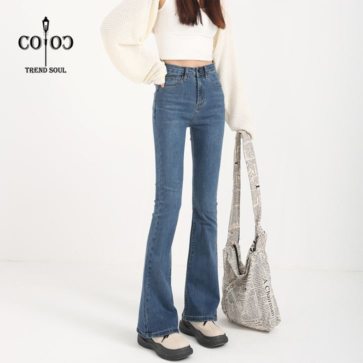 Coco Trend Soul Jeans -- Biru retro Highwaist Stretch Cutbray Celana Jeans Panjang Wanita