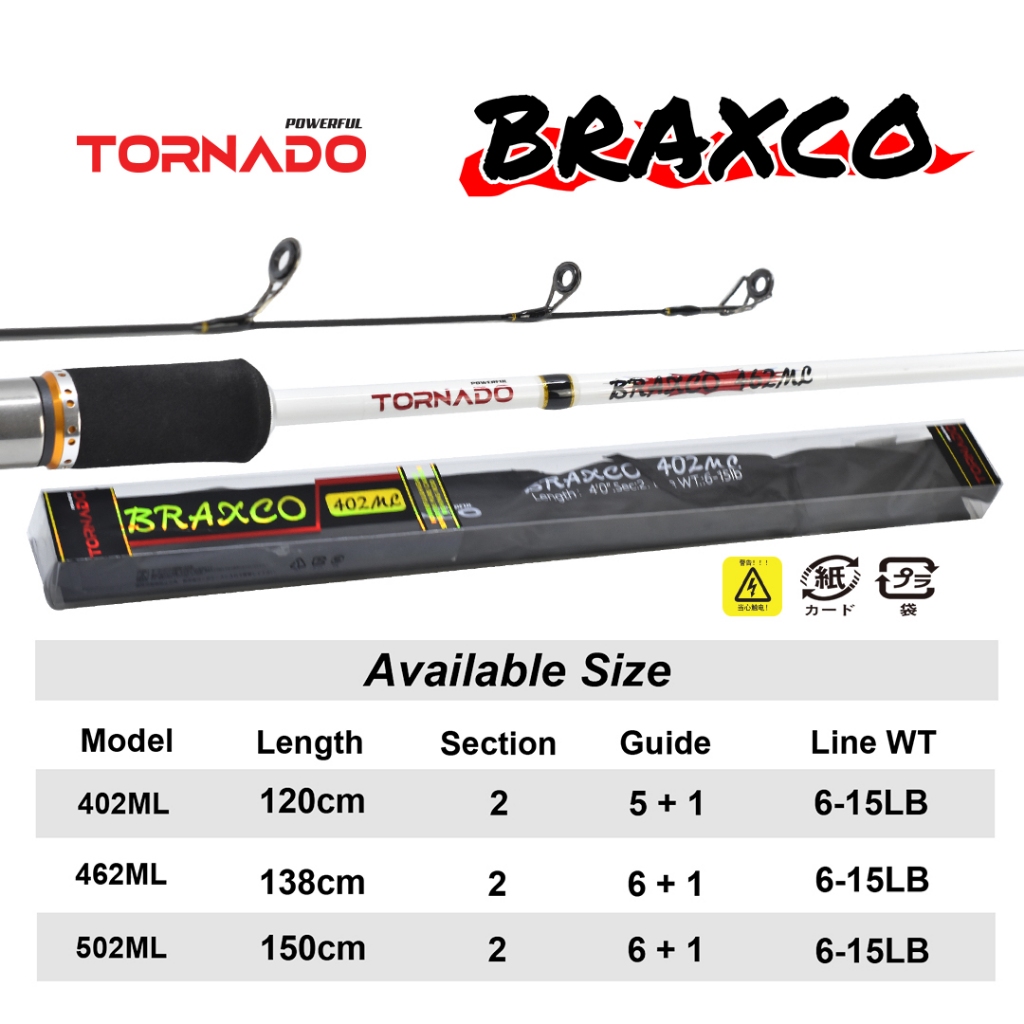 Tornado Joran Spinning Braxco 120cm - 150cm Carbon Solid Sambung 2 Middle Joint Garansi Untuk Kolam