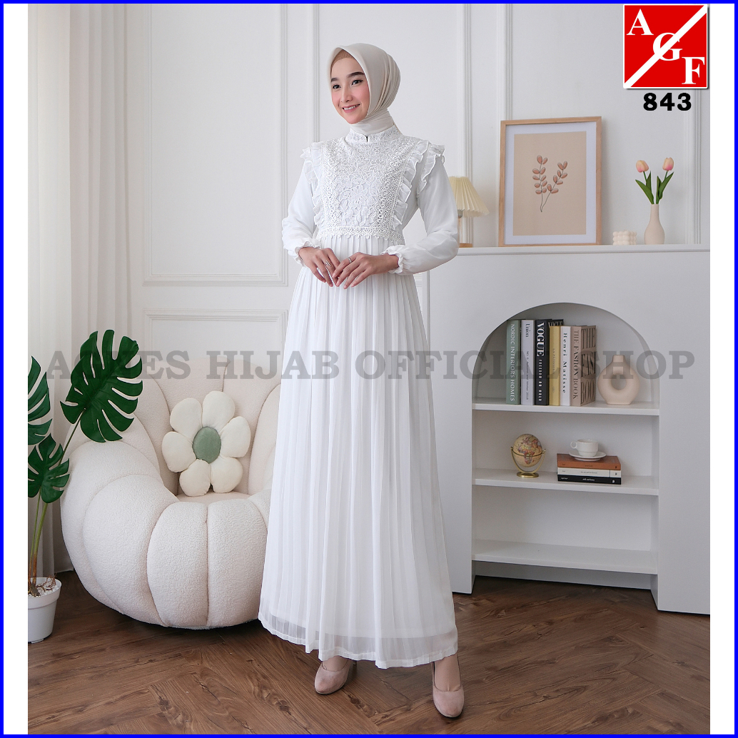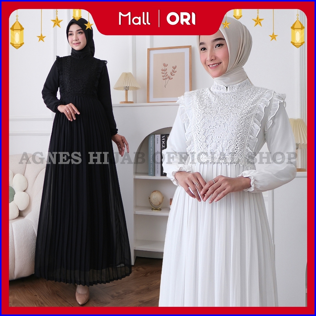 Agnes Hijab - Syafa Dress Gamis Putih Premium Baju Lebaran 2025 Terbaru Abaya Hitam Gaun Mewah Pesta Kondangan Dewasa Re
