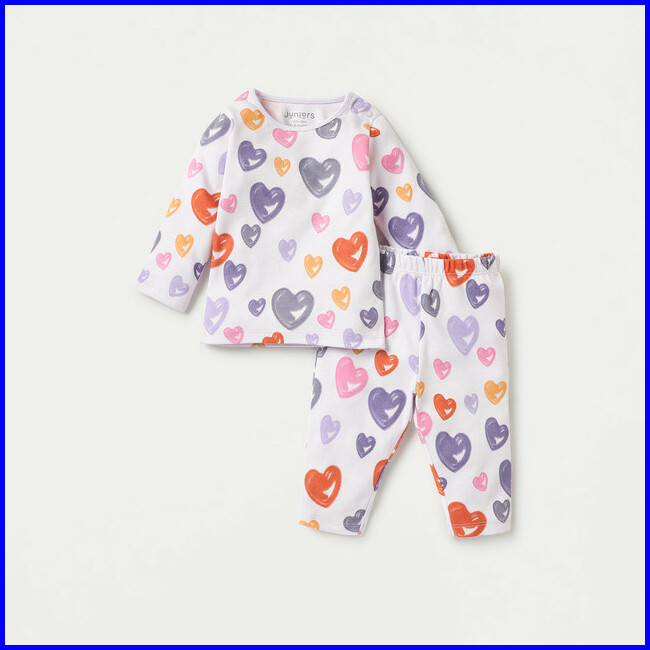 Babyshop Juniors Baju Anak Perempuan All-over Heart Print Long Sleeves T-shirt And Pyjama Set