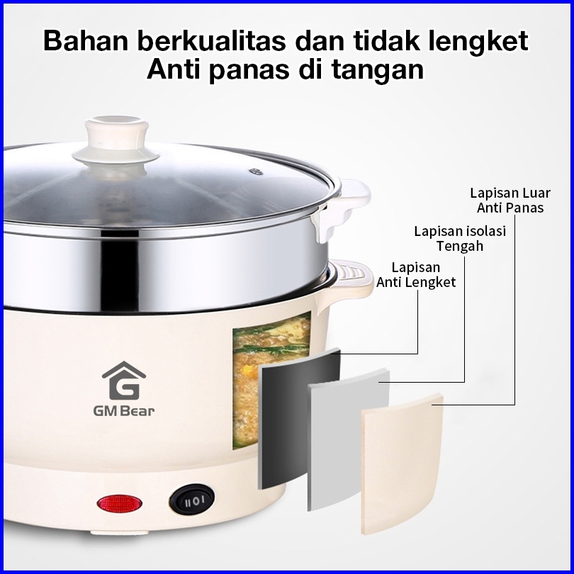 Gm Bear Panci Listrik Serbaguna 2 In 1 1225 - Electric Cooking Pot Free Steamer Stainless