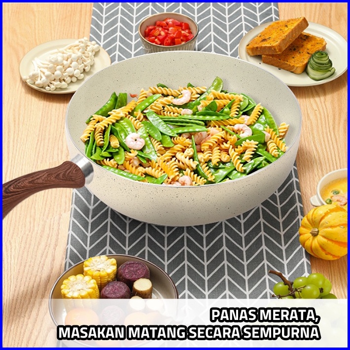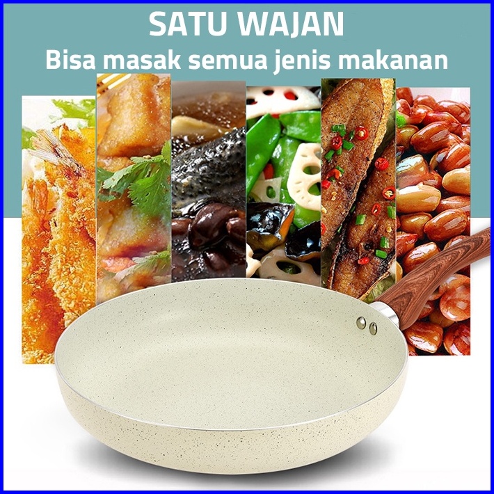 Gm Bear Wajan Penggorengan Marble Coating 20cm Beige 1812 - Wajan Fry Pan Marble Coating