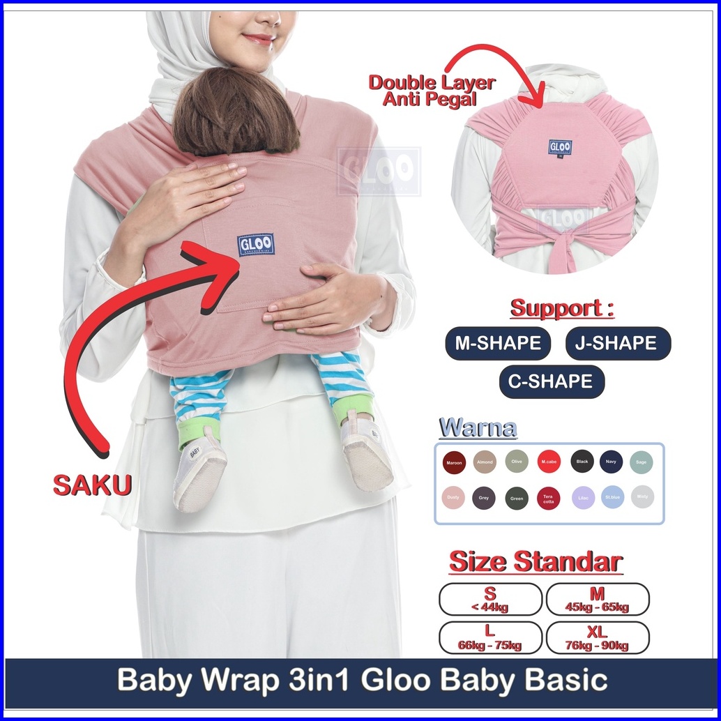 Gendongan Bayi Depan M Shape Baby Wrap 3in1 Geos Baby Premium With Sash Belt Gloo