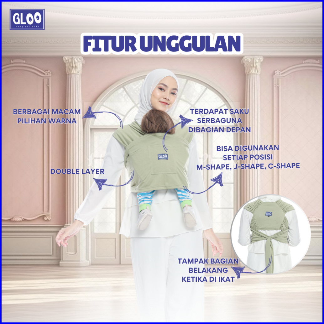 Gendongan Bayi Depan M Shape Baby Wrap 3in1 Geos Baby Premium With Sash Belt Gloo Almond
