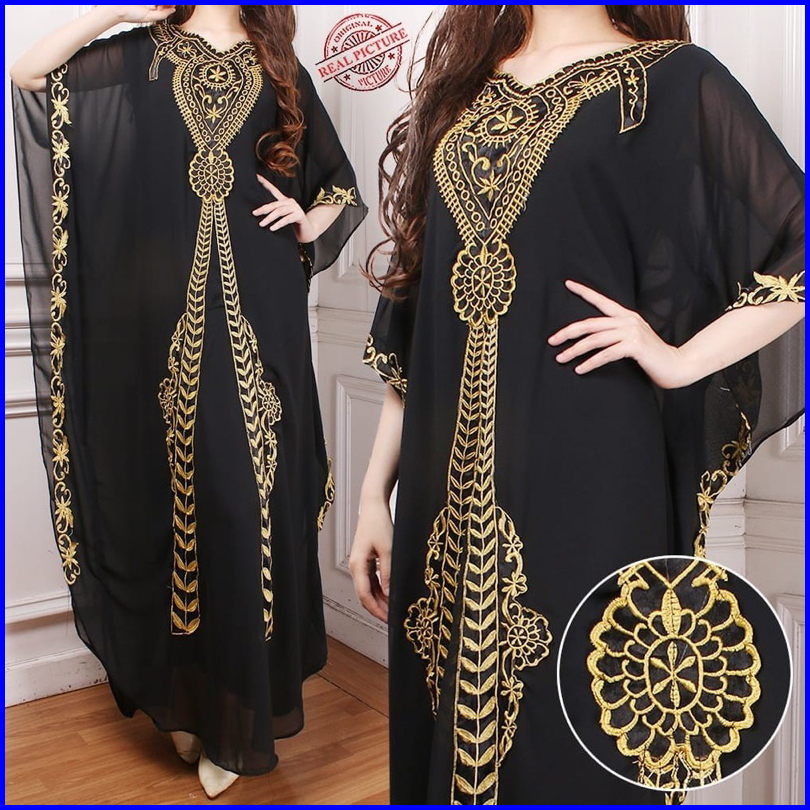 Kaftan Luna Kaftan Wanita Bordir Mewah Untuk Lebaran Dan Pesta Warna Hitam Terbaru Best Seller Termurah Grosir