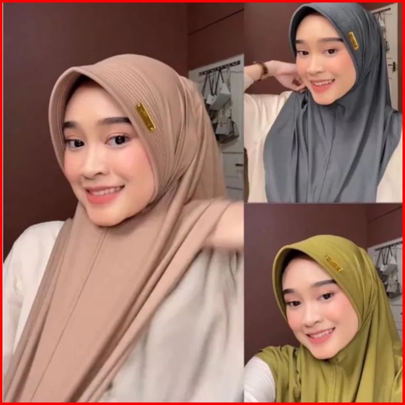 100rb Dpt 10 Hijab Bergo Hamidah M Label Akrilik Bonus Scrunchie Ori By Fanza Hijab