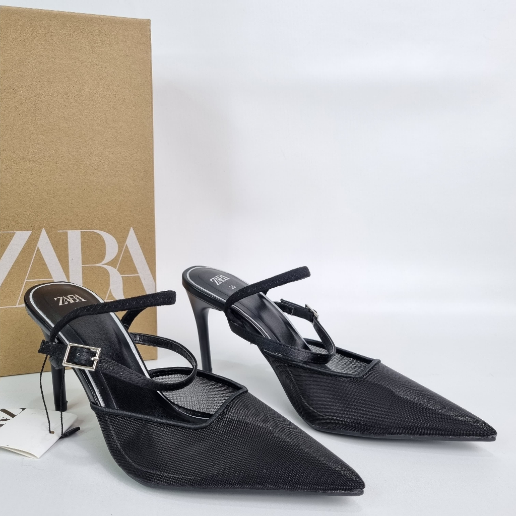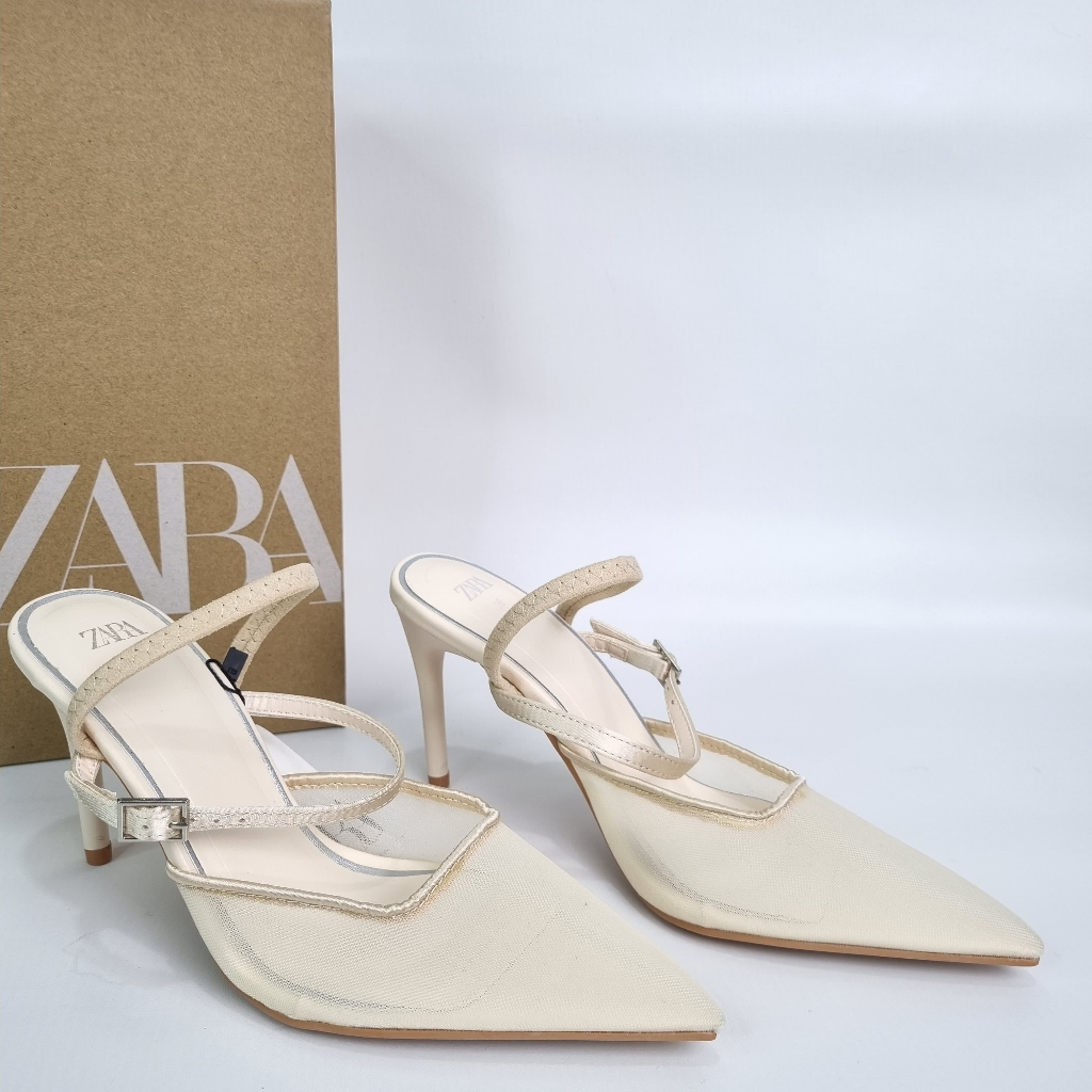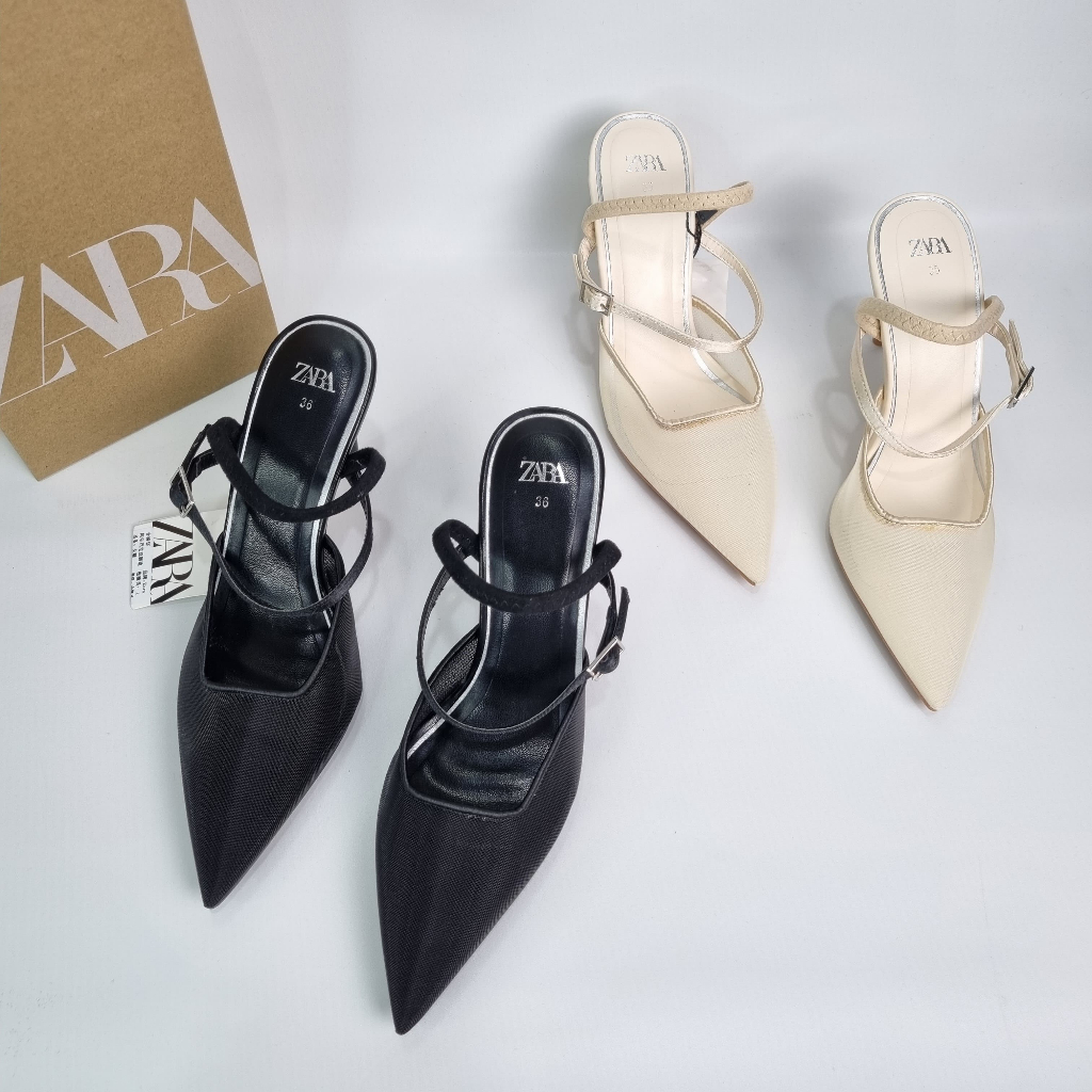 Sandal Sepatu ZR Wanita Heeled Mesh Desain Elegan Hiils High Hils Original Import Zara Charles Hak Kondangan Kerja