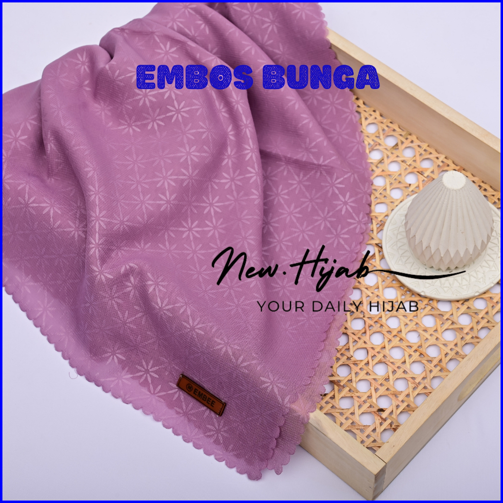 Jilbab Segiempat Embos Motif Bunga Kerudung Segi Empat Embos Hijab Embos Bintang