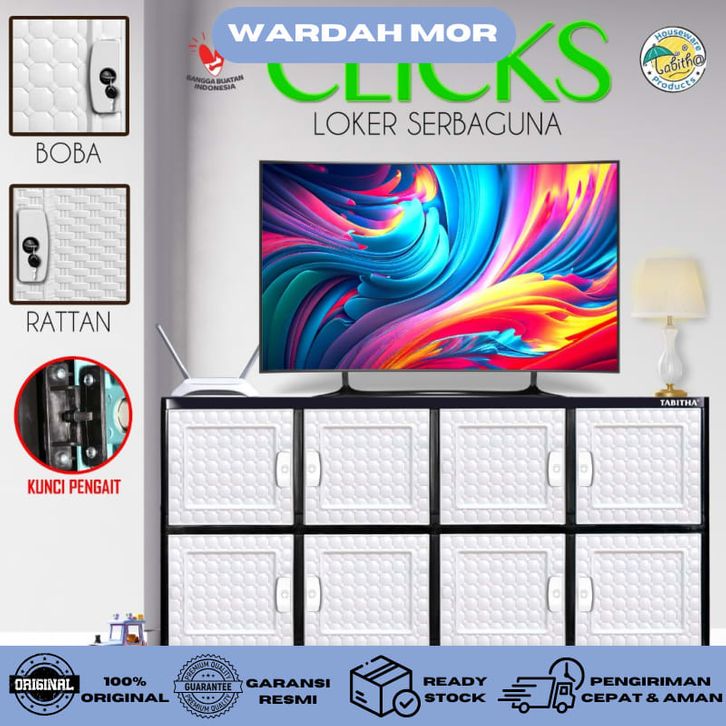 Lemari Pakaian Plastik TABITHA CLICKS TOWER 4 ROTAN BOBA PRINTING 8 PINTU 12 PINTU MURAH KOKOH TEBAL WARDAH MOR