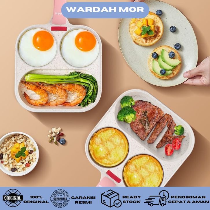 Wajan Cetakan Telur Unik 3 Sekat Anti Lengket 19 Cm Frying Pan Gagal Tebal WARDAH MOR