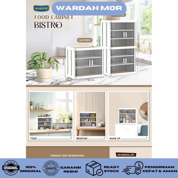 NAIBA Tempat Penyimpanan Makanan Tertutup Bahan Plastik PUTIH Transparant Bening FOOD CABINET BISTRO WARDAH MOR