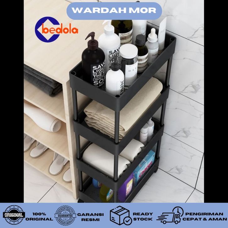 Bedola Square Rak Dapur Rak Toilet Rak Susun Serbaguna Rak Dorong Rak Salon Rak Troli 4 Tingkat Dengan Roda WARDAH MOR