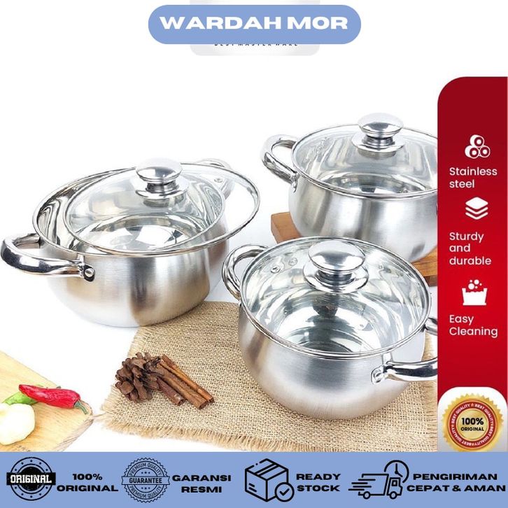 Panci Soup Labu BMW isi 3 Pcs Tutup Kaca Pumpkin Satuan High Quality WARDAH MOR