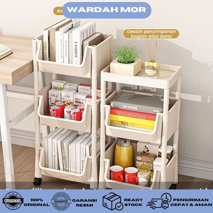 Pocket Dragon Susun Serbaguna Tempat Rak Buku Anak Lemari Buku Plastik Rak Portable Roda Rak Mainan Rak Roda Toy