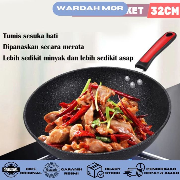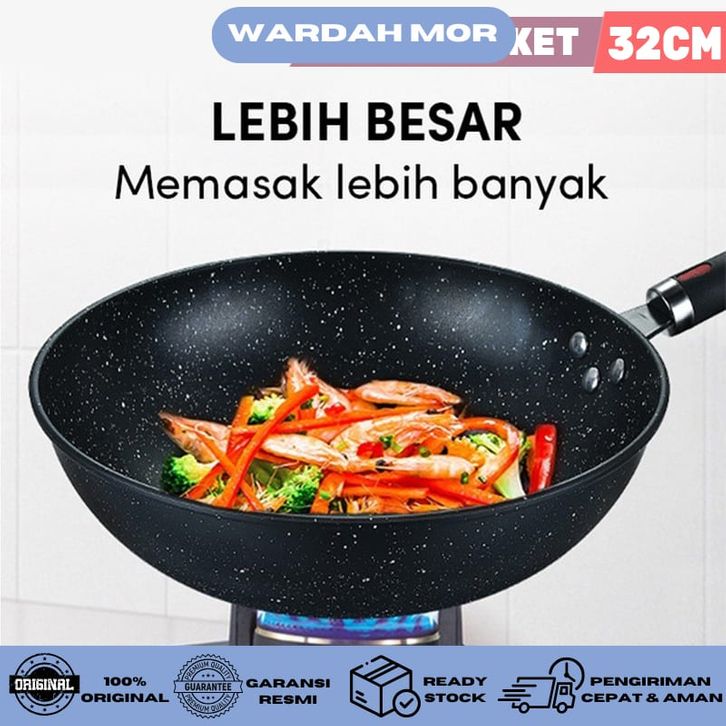 PAKET HEMAT Wajan Wokpan Marble 32cm Panci Steamer 28 CM Stainless Wajan BBQ Datar 34 CM WARDAH MOR