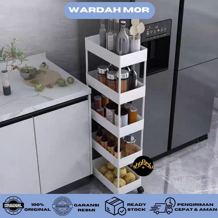 Rak troli square rak toilet rak kamar mandi plastik rak dapur serbaguna rak susun portable roda 5 tingkat WARDAH MOR