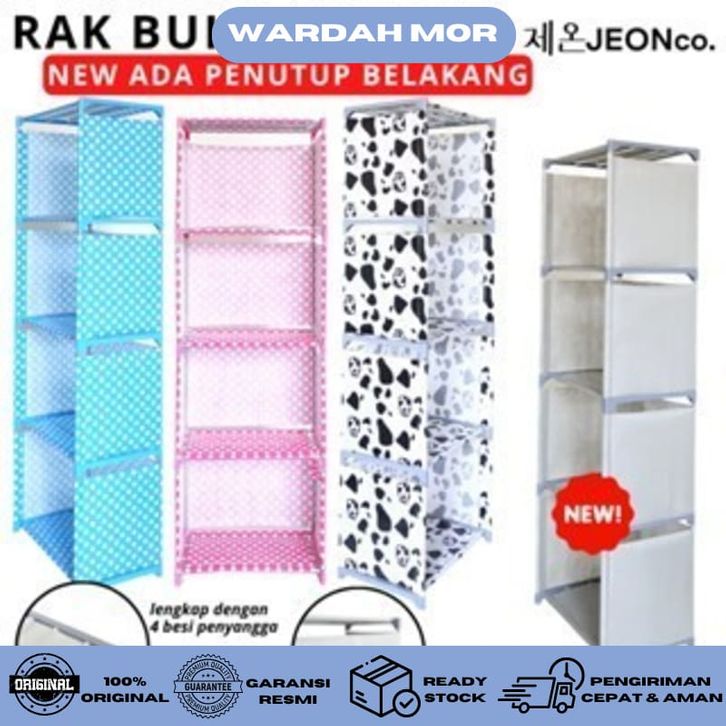 RAK BUKU 5 TINGKAT 4 SUSUN Tutup Belakang New Portable Multifungsi Tempat Serbaguna Murah Kokoh Kuat WARDAH MOR