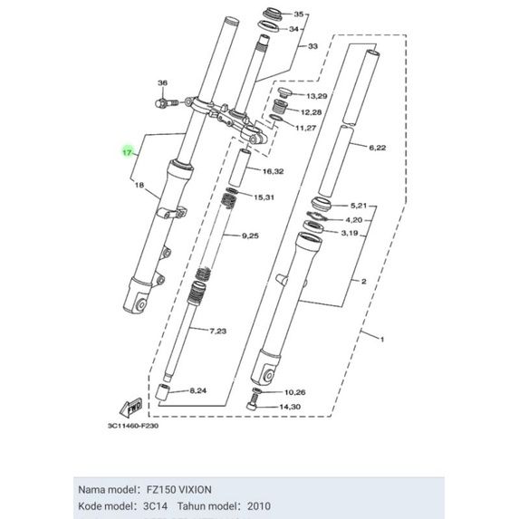 Bottom Shock Tabung Shok Set As Shok Kanan Vixion Old Lama Asli Ori YAMAHA 3C1 F3103 10