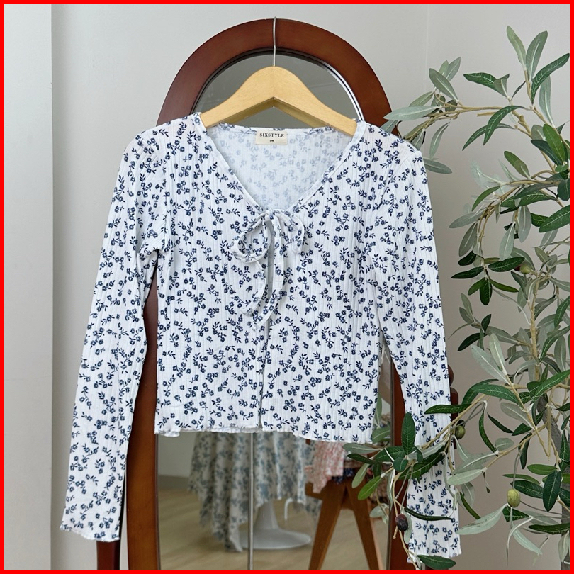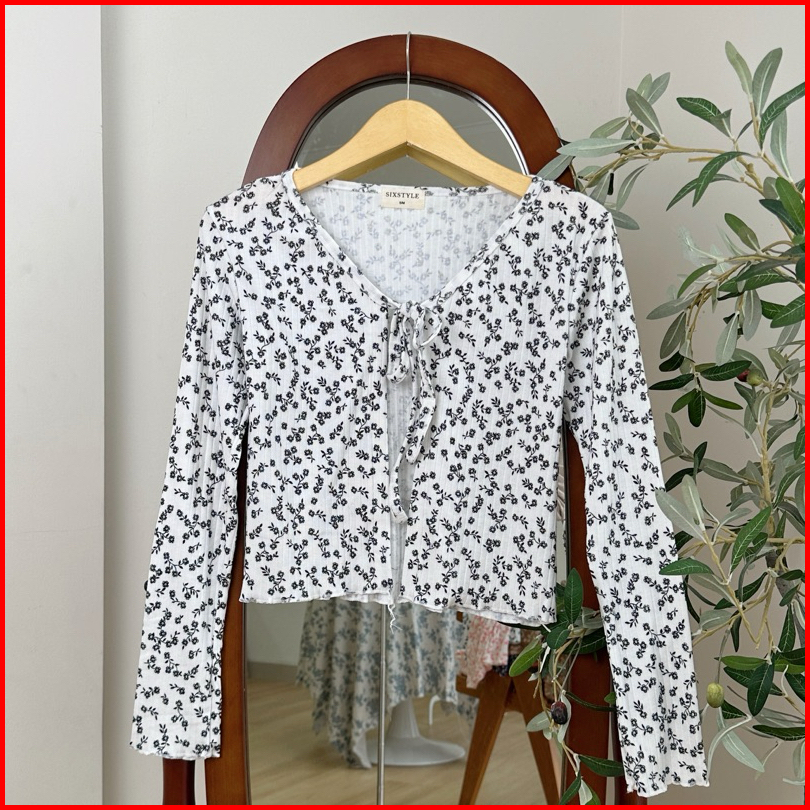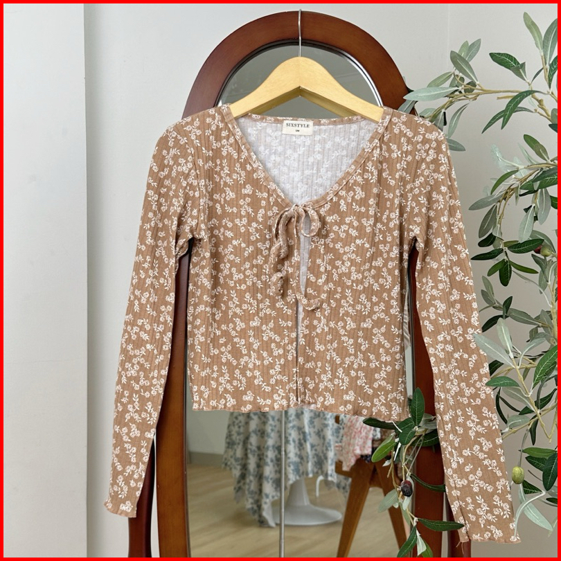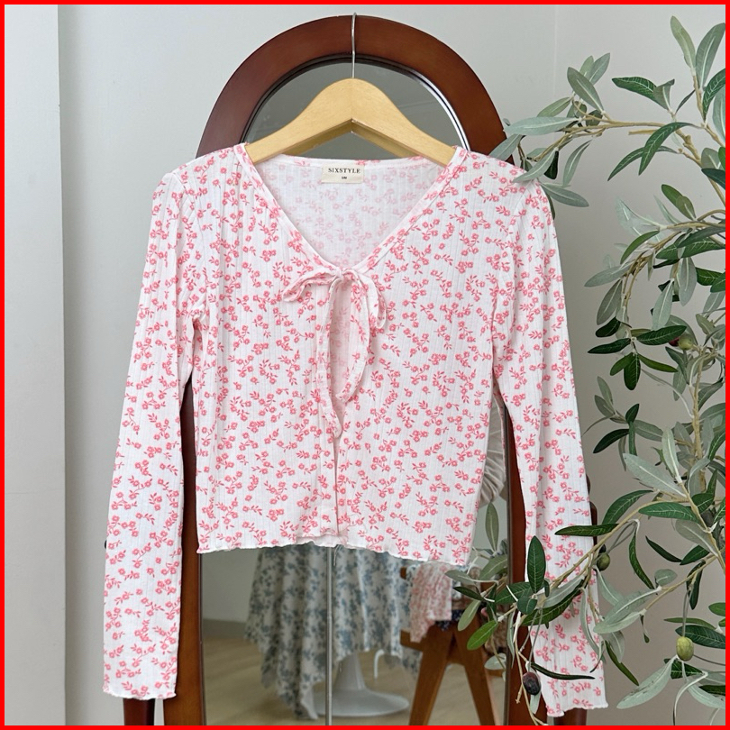 Sixstyle Sane - Cardigan Rib Knit Motif Cardigan Korean Fashion