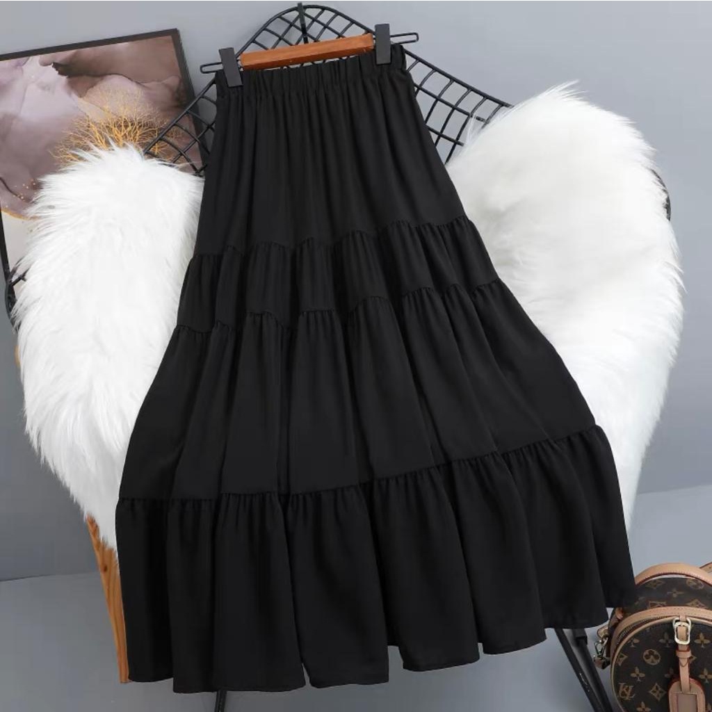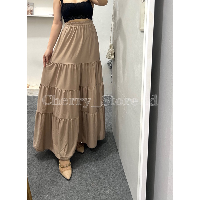 rok panjang beraksen 4 susun | long skirt korean style | rok wanita muslim