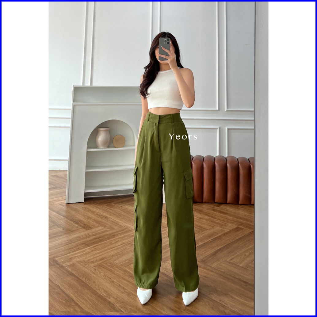 Yeors - Niki Cargo Pants - Wide Leg Highwaist Cullote - Celana Kargo Kulot Murah Basic Kasual Wanita - Loungewear Casual