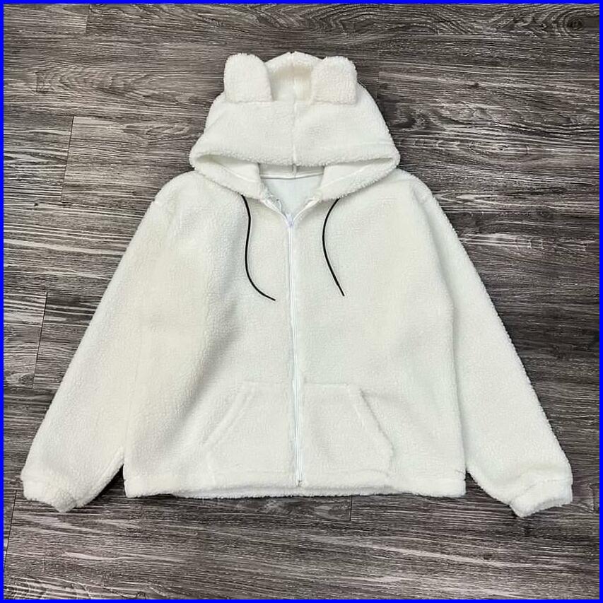 Sweater Hoodie Zip Cute Sherpa Bulu Domba