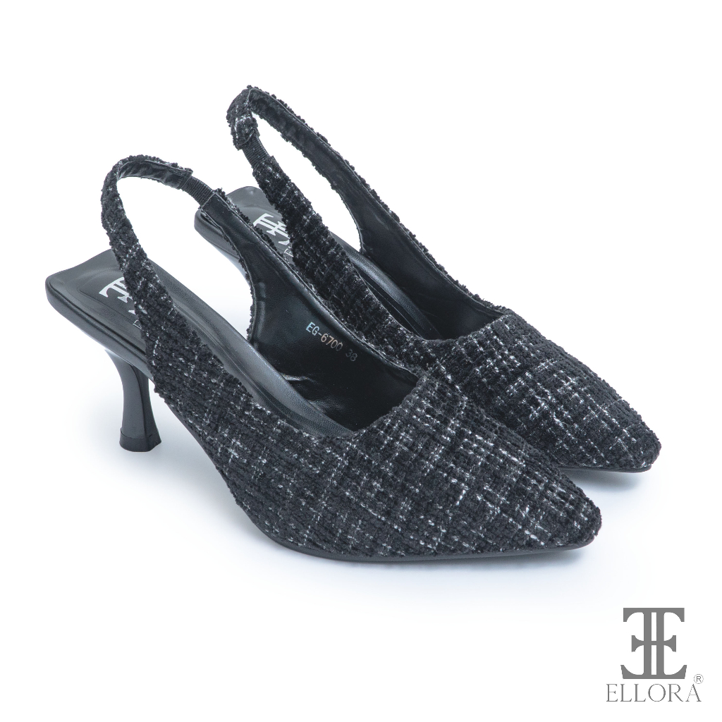 Sepatu Hak Wanita Murah Heels Terbaru Ellora EG6700 Sepatu High Heels Wanita Slingback Import 8cm Bahan Tweed
