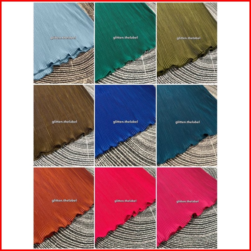 Taupe, Golden, Hitam, Smoke, Abu tua, Denim, Milo, Broken white, Coksu, Khaki, Thaitea, Baby pink, Maroon, Baby blue, Royal blue, Olive, Emerald green, Fanta, Magenta, Army, Sage, Biru turq, Hijau botol, Almond, Oat, Cream, Bata, Navy, Mint, Silver, Latte, Mocca, Hijau turq, Lemon, Abu Muda, Violet, Hazelnut, Dusty ungu, Cinnamon, Pramuka, Sunkist, Ungu pastel, Hijau Tua, Ash grey, Stone, Biscuit, Aqua, Hitam (panjang 82cm), Almond (pnjang 82cm), Cream (panjang 82cm), Coksu (panjang 82cm), Taupe (panjang 82cm)