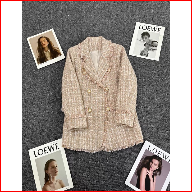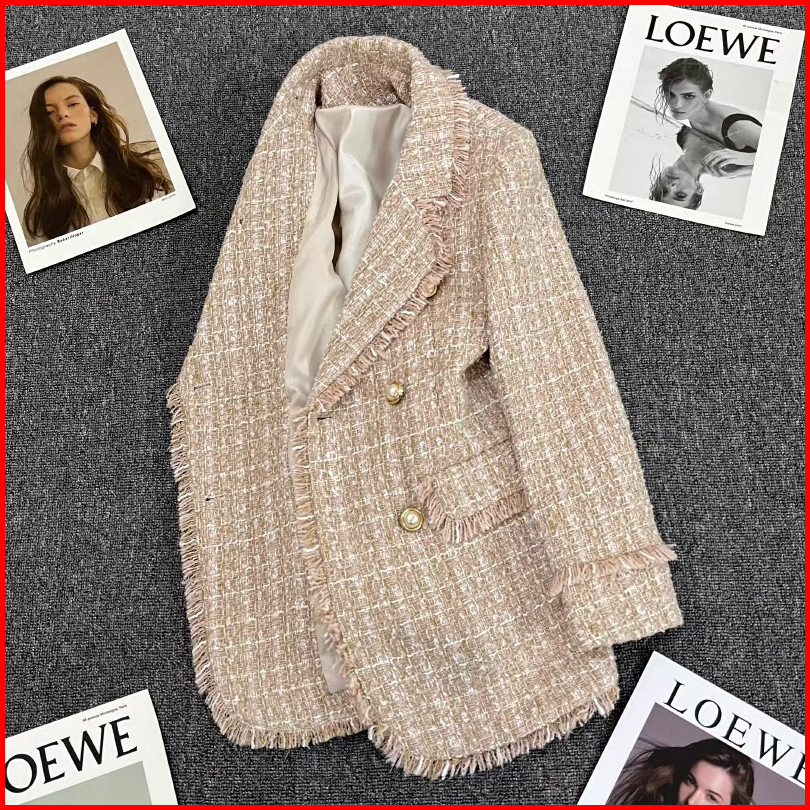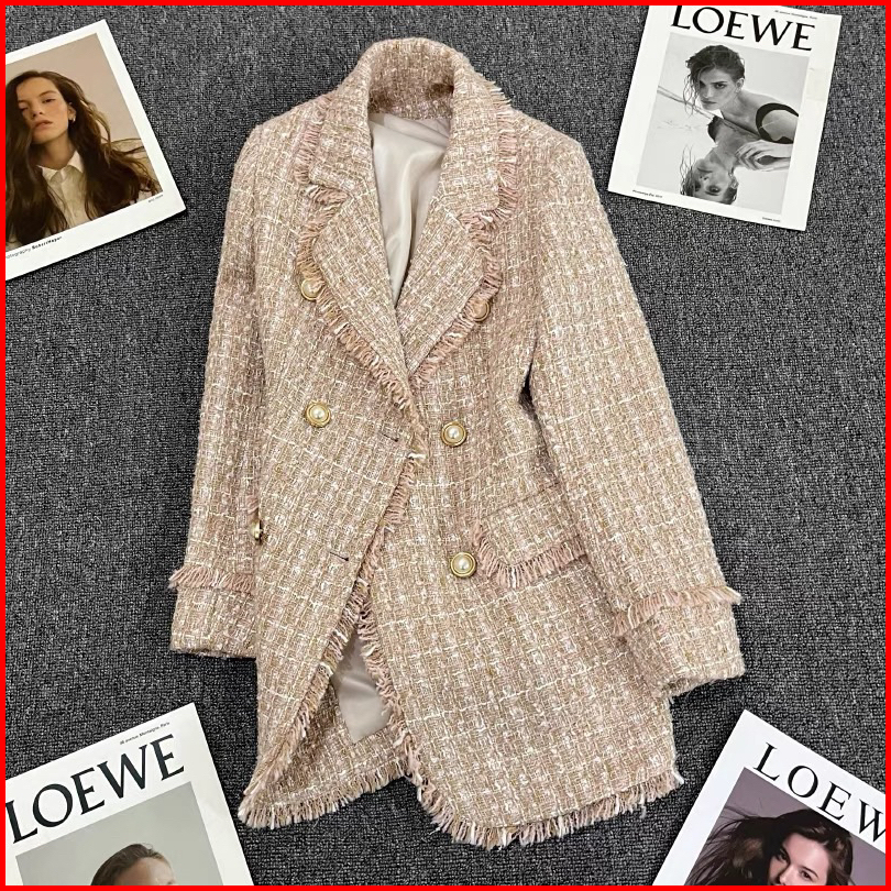 The0ne Big Size L-xl-2xl-4xl Lake Blue V Neck Long Blazer Tweed Double Breasted
