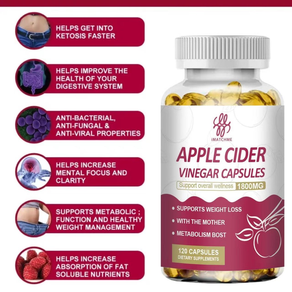 iMATCHME Natural Slimming Apple Cider Vinegar Capsules Weight Loss Reduces Anxiety & Stress Boost Immune System 120pcs K