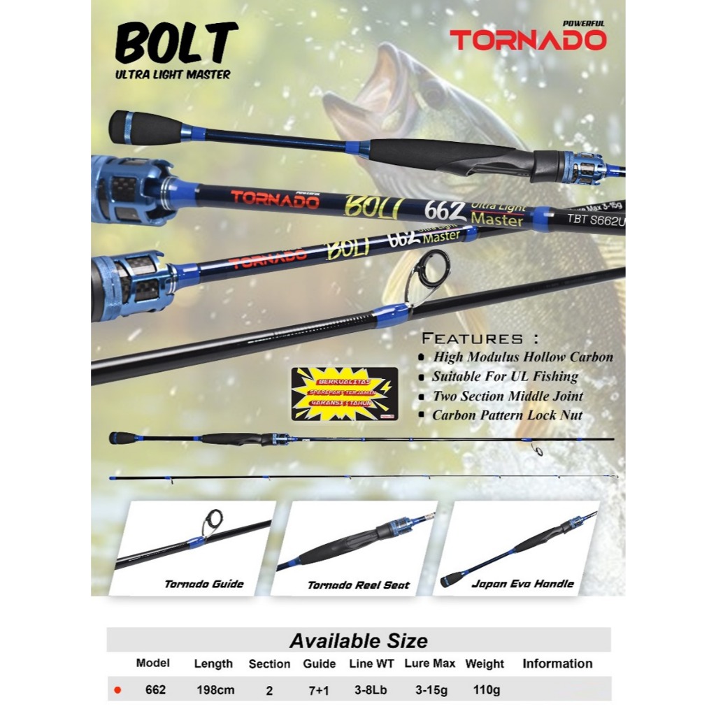 Tornado Joran Ultralight Spinning Bolt 198cm 3-8lb High Modulus Carbon Mancing Casting Ultra Light Ul Japan Style Bergar