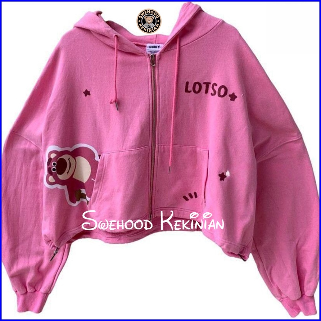 Lotso Bear Pink Premium Jaket Sweater Hoodie Zipper Wanita Kekinian Fashion Outfit Ootd Korean Style Suiter Krunek Jacke