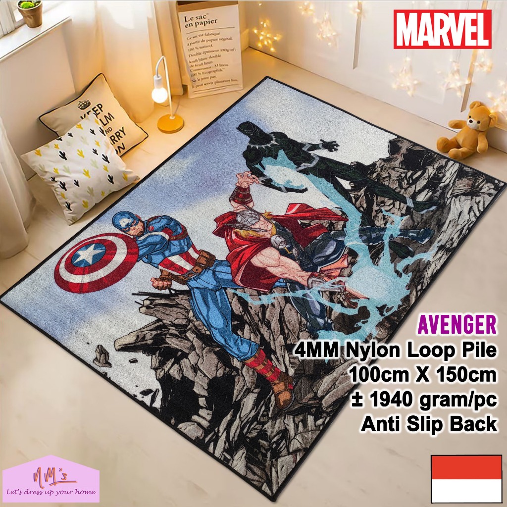 Disney Marvel Avenger Series Karpet Playmat Anak Ukuran 100x150cm Anti Slip Motif Kartun Superhero Karakter Bulu Halus