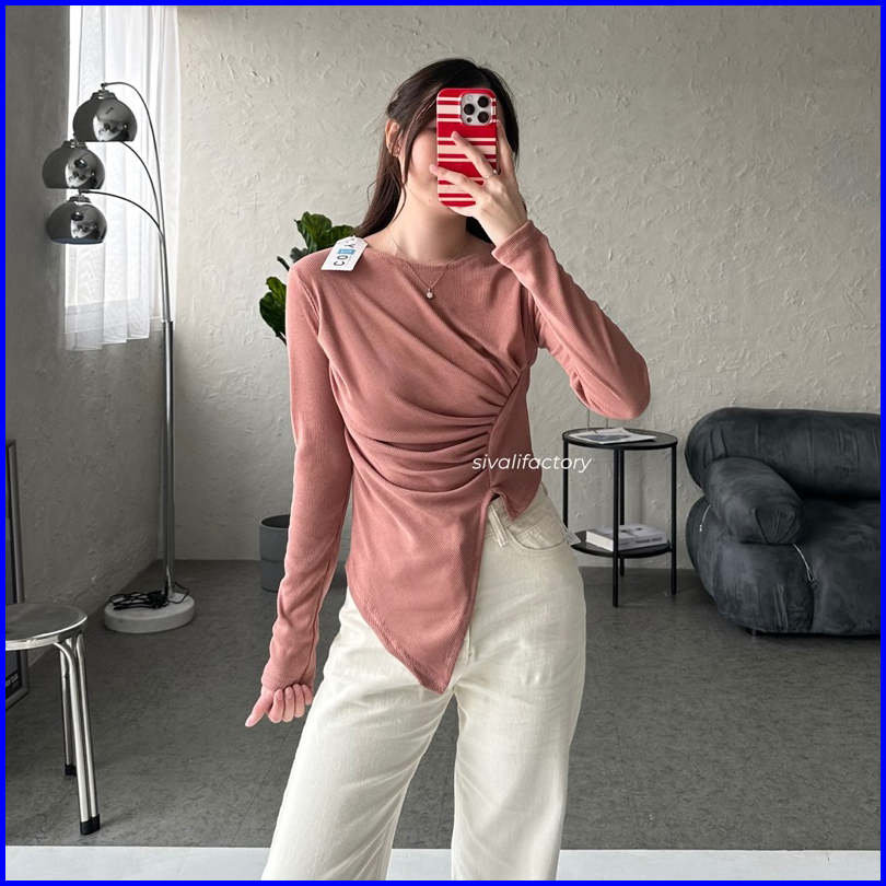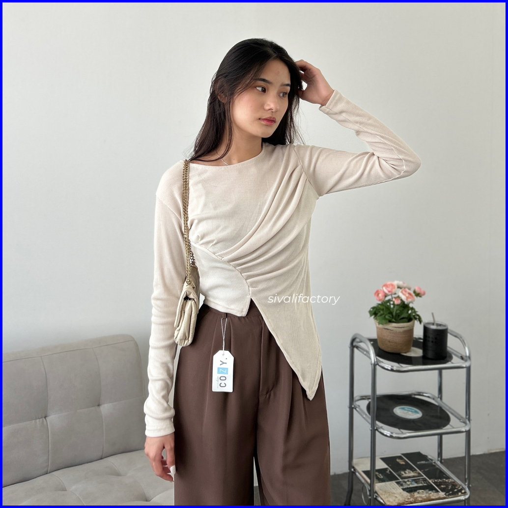 Sivali Zia Knit Top Atasan Knit Wanita - Korean Top - Baju Knit Wanita Lengan Panjang - Long Sleeve