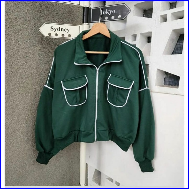Termurah Di Vallina - White List Zip Pocket Jacket Outerwear Korean Remaja Wanita Premium