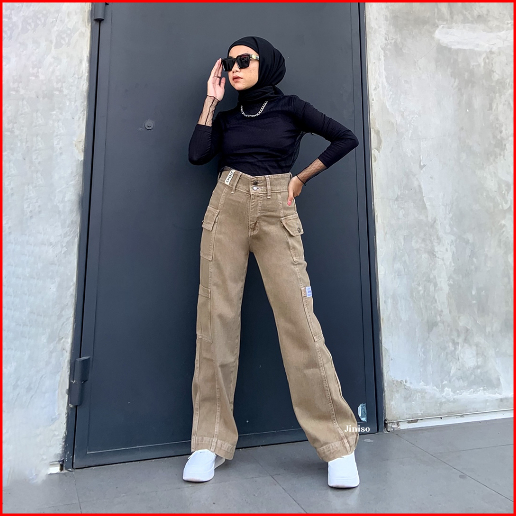 Jiniso - Cargo Baggy Highwaist Hands Up Jeans