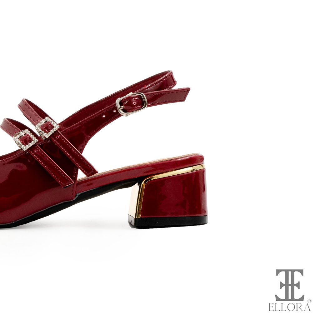 Sepatu Hak Wanita Terbaru Sepatu Heels Tali Ellora EG6258 Sandal Mary Jane Wanita Chunky Heels 5cm Ankle Strap Glossy