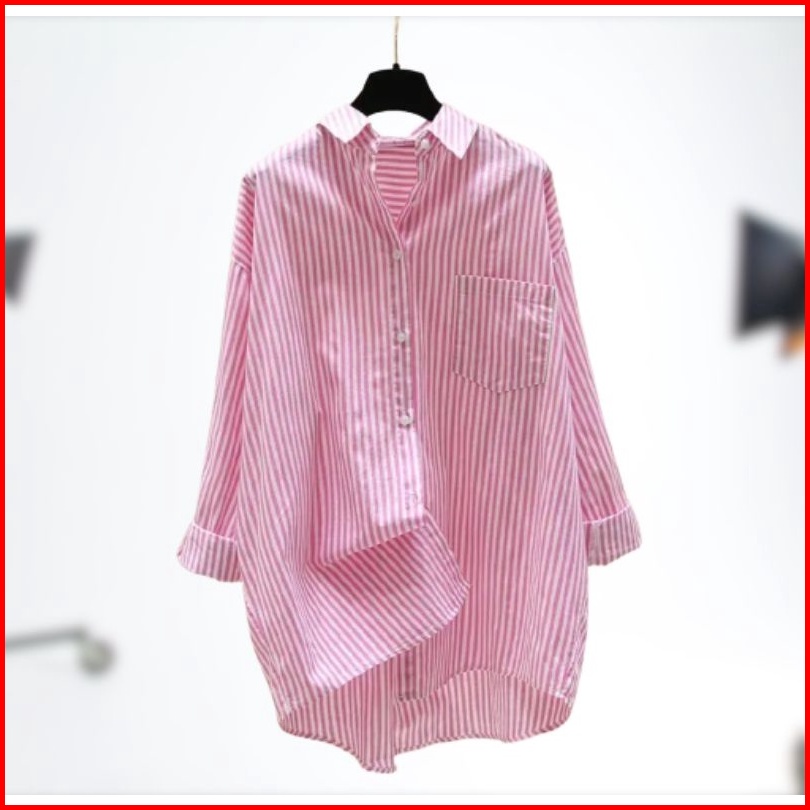Kemeja Salur Wanita Kemeja Saku Baju Atasan Remaja Dewasa Outfit Kekinian Kemeja Terlaris