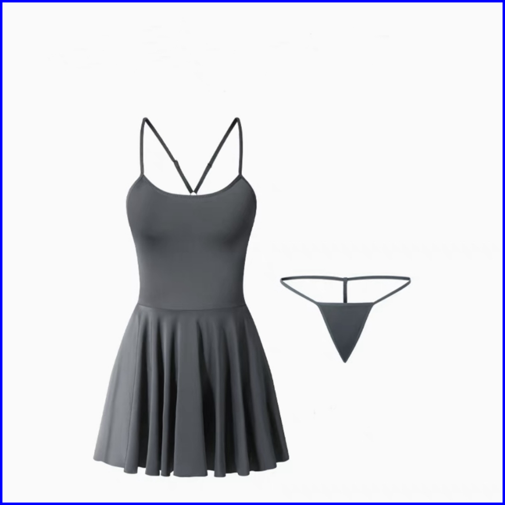 Lingerie Sexy Suspender Tipe-a Rayuan Ketat Backless Dress Set G String A558