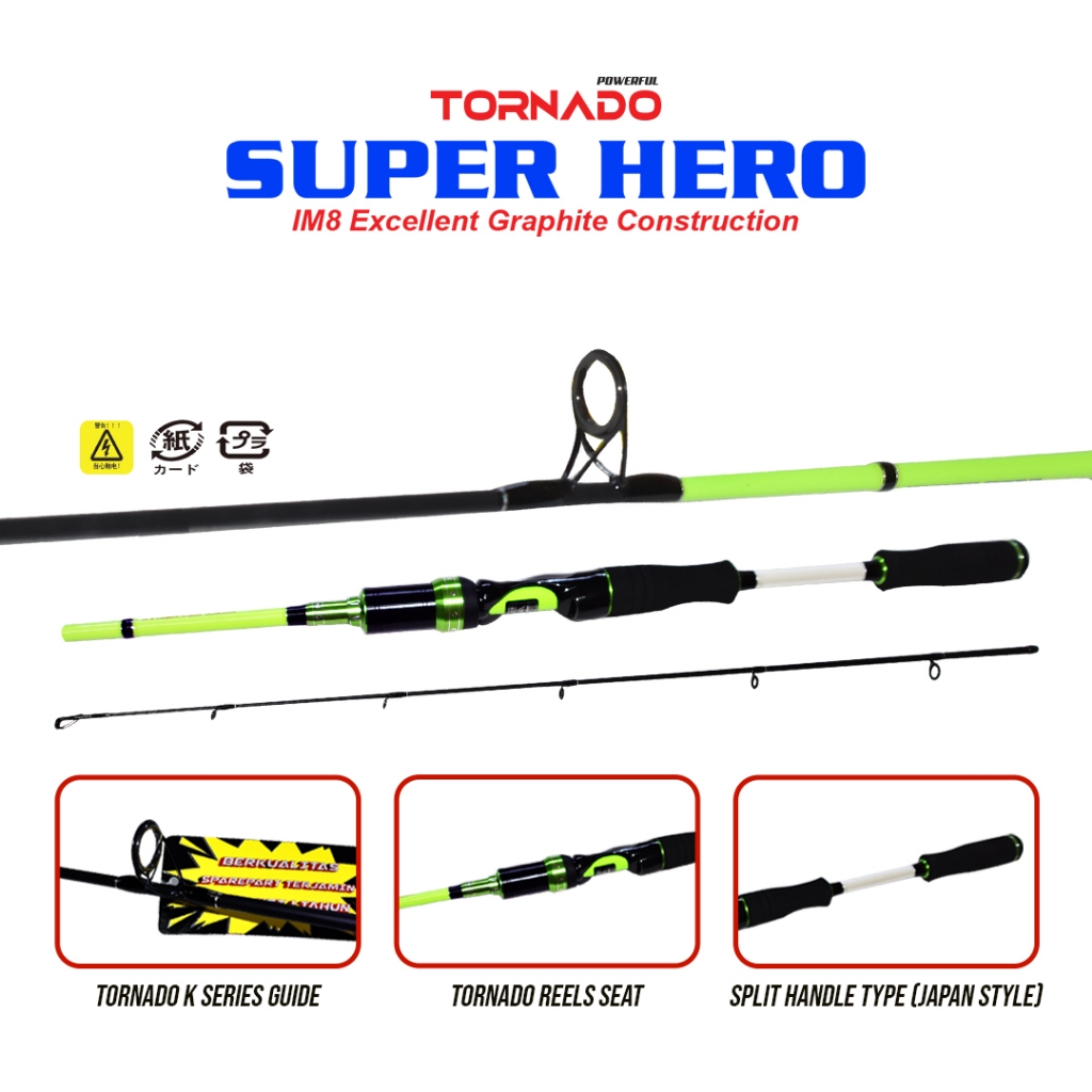 Joran Spinning Tornado Super Hero Bahan Carbon Im8 Sambung 2 Mid Joint 138cm - 240cm Untuk Galatama Galapung Dan Casting